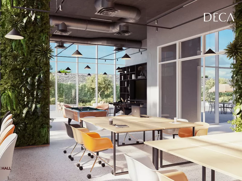 • کار: فضاهای اجتماعی اختصاص داده شده مانند کتابخانه، اتاق جلسه و فضاهای کاری برای الهام بخشیدن به بهره وری.